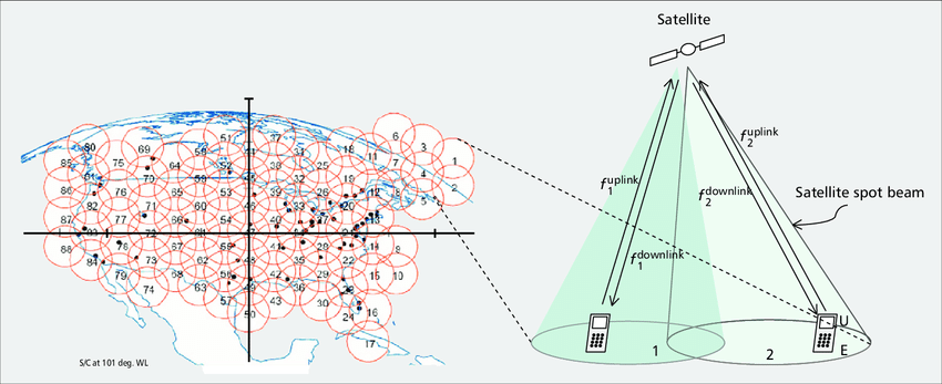 Each satellite usually has multiple beams, such as: